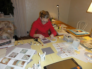 Today my daughter couldn´t stop so she has, almost all day, been sitting in the livingroom and making a card.